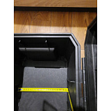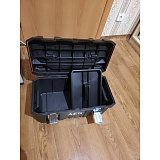 Очень большой, освободил шкаф от инструмента, уложил всё, нигде ничего не валяется, заказал еще один. Уплотнение крышки очень хорошая фишка данного ящика.