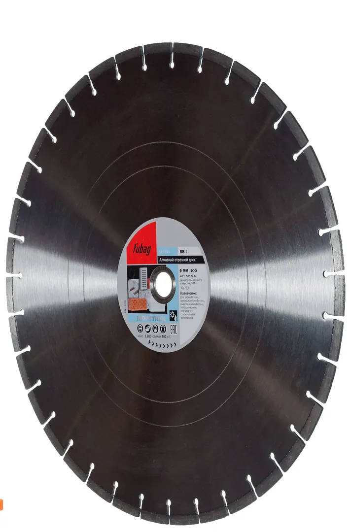 Алмазный отрезной диск Fubag BB-I 500x30-25.4 мм - это инструмент, который применяется для резки различных материалов, включая камень, бетон, кирпич и металл.