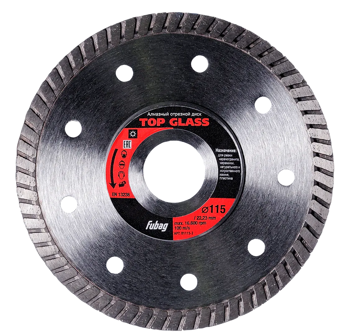 - Строительство и ремонт - алмазный диск Top Glass_ диам. 115/22.2 идеально подходит для резки и обработки различных материалов, используемых в строительстве и ремонте, таких как керамика, стекло, камень и другие твердые материалы.