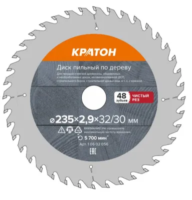 Диск пильный по дереву Кратон обладает высокой скоростью реза и точностью, что позволяет быстро и легко выполнять работу по распилу деревянных материалов. Благодаря использованию инструментальной стали в качестве материала корпуса, диск обладает высокой прочностью и долговечностью. Также стоит отметить удобство в использовании диска благодаря его оптимальному размеру и форме зубьев.