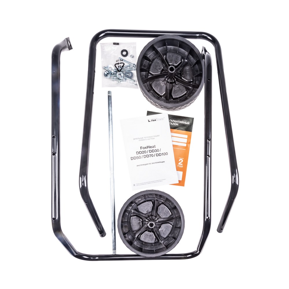 Тепловая пушка - 1шт., Колёса - 2 шт., Ось для колёс - 1 шт., Трубка опоры - 1 шт., Трубка транспортировочной ручки - 1 шт., Пакет с монтажным комплектом крепежа - 1 шт., Инструкция + гарантийный талон - 1 комплект, Упаковка - 1 шт. |