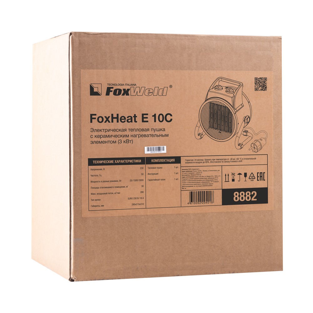 Электрическая тепловая пушка FoxHeat E 10C от бренда FoxWeld предназначена для обогрева помещений. Она обеспечивает комфортную температуру в холодное время года, эффективно прогревая пространство.