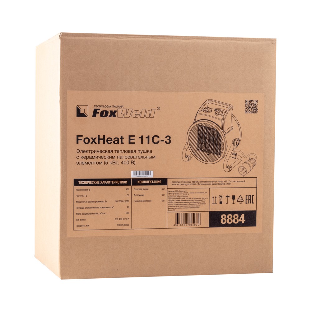 Электрическая тепловая пушка FoxHeat E 11C-3 от бренда FoxWeld предназначена для обогрева помещений различного назначения, обеспечивая быстрый и равномерный прогрев воздуха. Она подходит для использования в жилых, коммерческих и производственных пространствах, где требуется поддержание комфортной температуры.