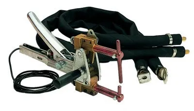 Механические клещи марки TELWIN, которые укомплектованы подводящими кабелями и парой консолей на 120 мм. Применяются для ручной фиксации свариваемых листов. Конструкция клещей позволяет быструю и удобную замену электродов. Используются для выполнения сварочных работ методом точечной сварки.