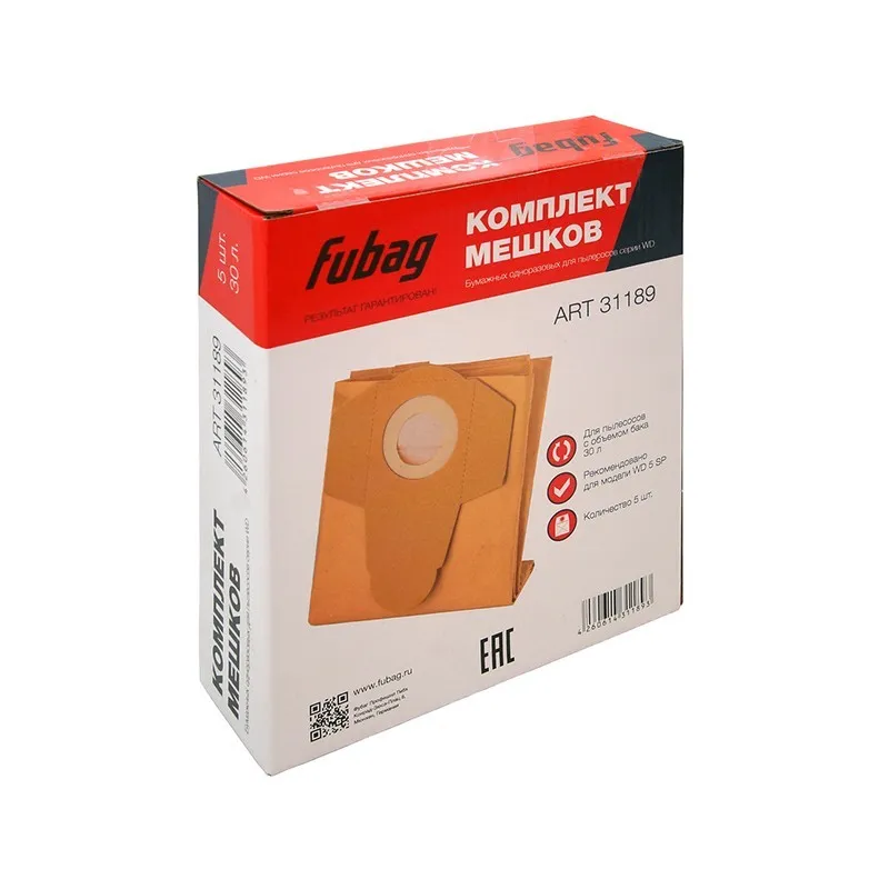 Комплект мешков одноразовых Fubag 30 л для пылесосов серии WD Fubag 5SP 5 шт.