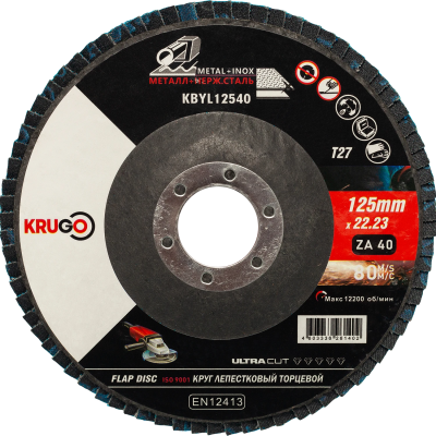 Круг лепестковый торцевой 125х22mm Р40 KRUGO