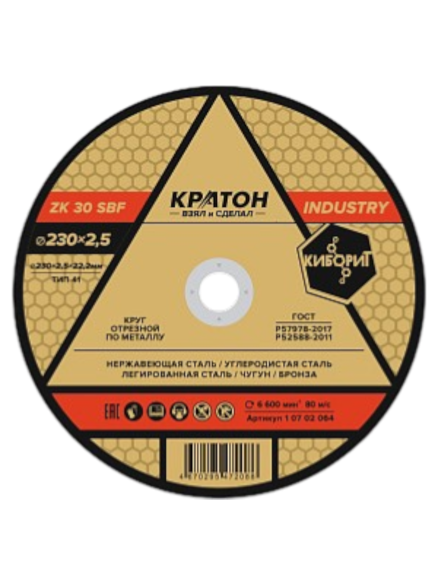 Круг отрезной по металлу Кратон "INDUSTRY" ZK30SBF 230х2,5х22,2 мм