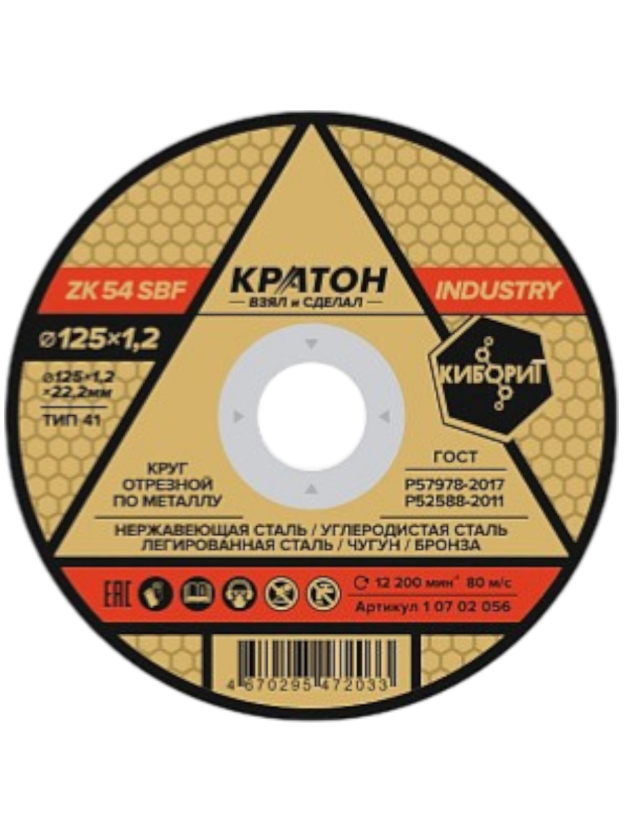 Круг отрезной по металлу Кратон "INDUSTRY" ZK54SBF 125х1,2х22,2 мм