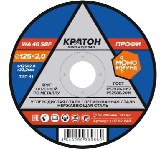 Круг отрезной по металлу Кратон "Профи" WA46SBF 125х2,0х22,2 мм
