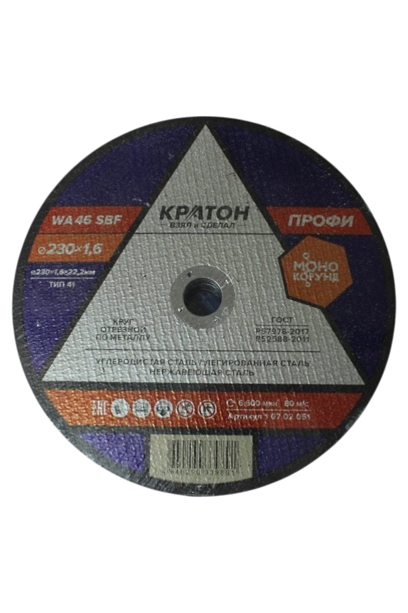 Круг отрезной по металлу Кратон "Профи" WA46SBF 230х1,6х22,2 мм