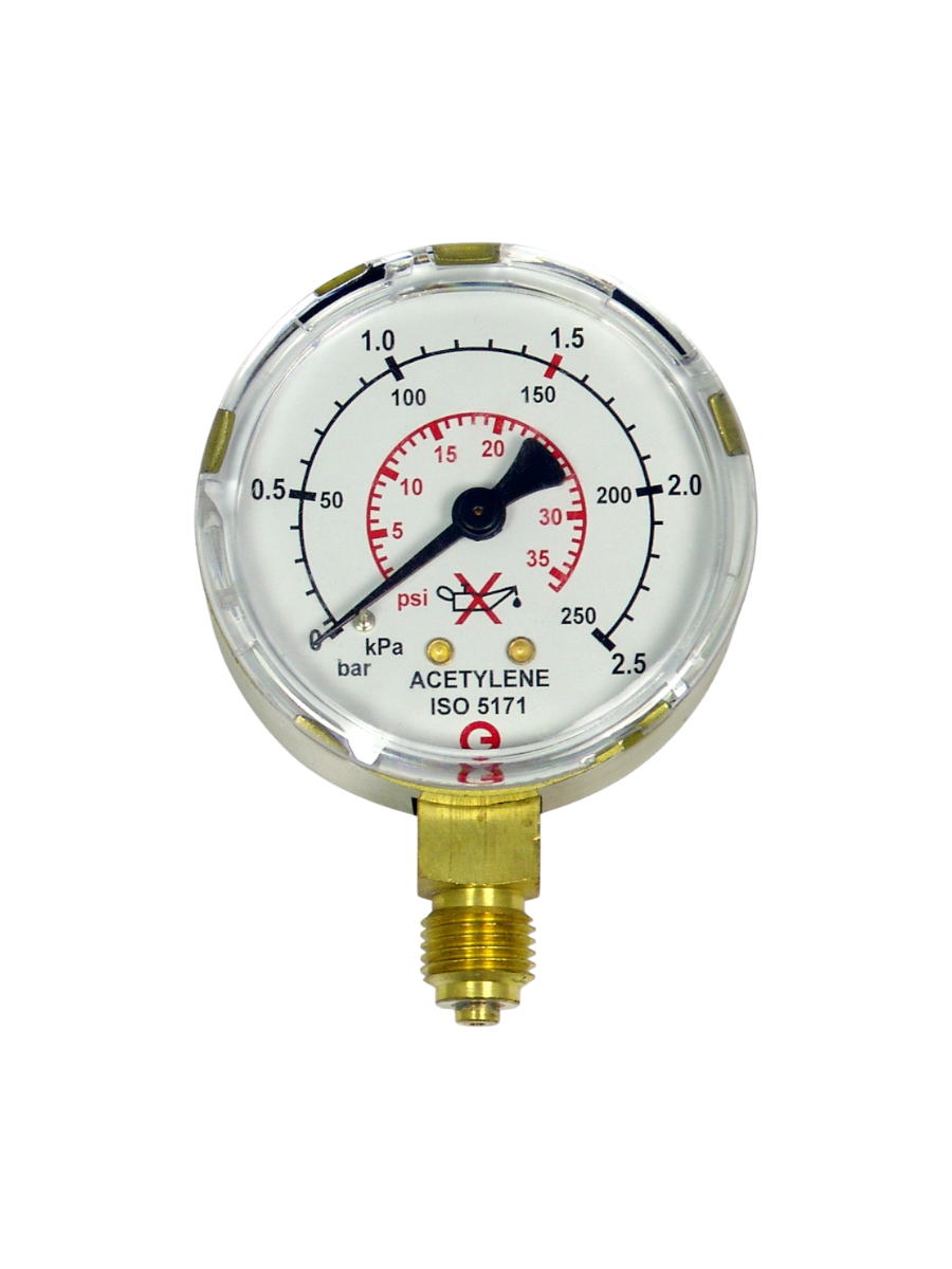 Манометр Ацетиленовый 0,15/0,2 МПа, 63 мм, G1/4" KRASS