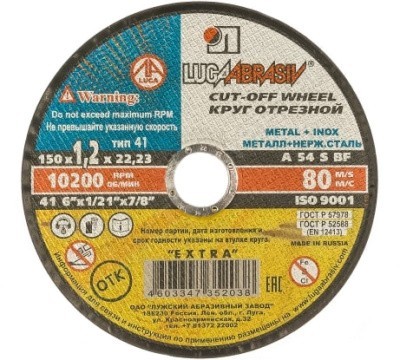 Отрезной круг Луга A 54 S BF 150х1.2х22 мм