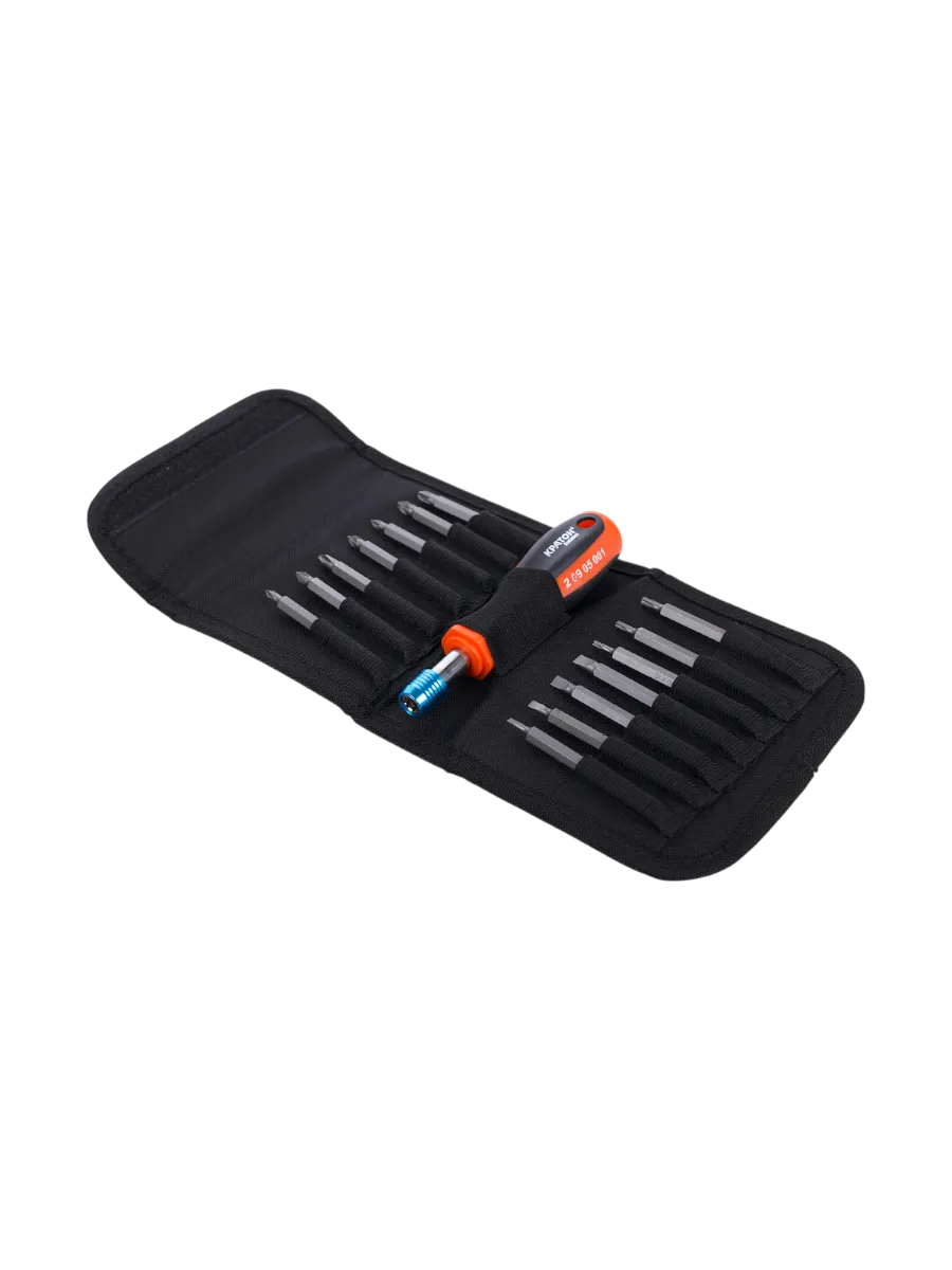Отвертка Кратон переставная Complect SSK-01, набор 14 пр., предназначена для выполнения различных монтажных и ремонтных работ. Подходит как для профессионального использования, так и для бытовых нужд, обеспечивая точность и надежность при работе с крепежными элементами.