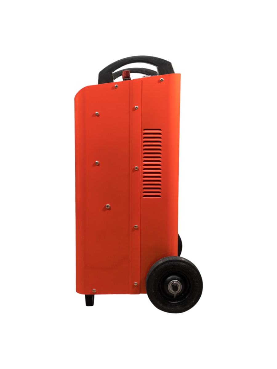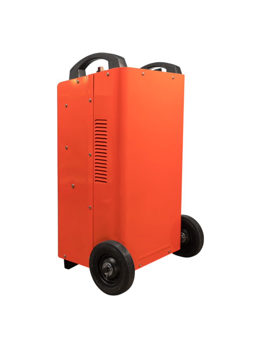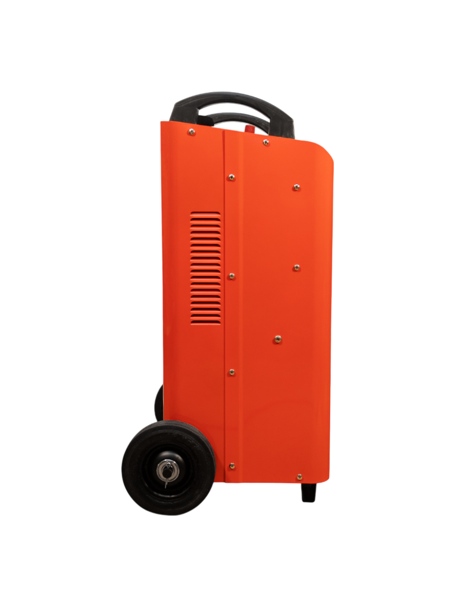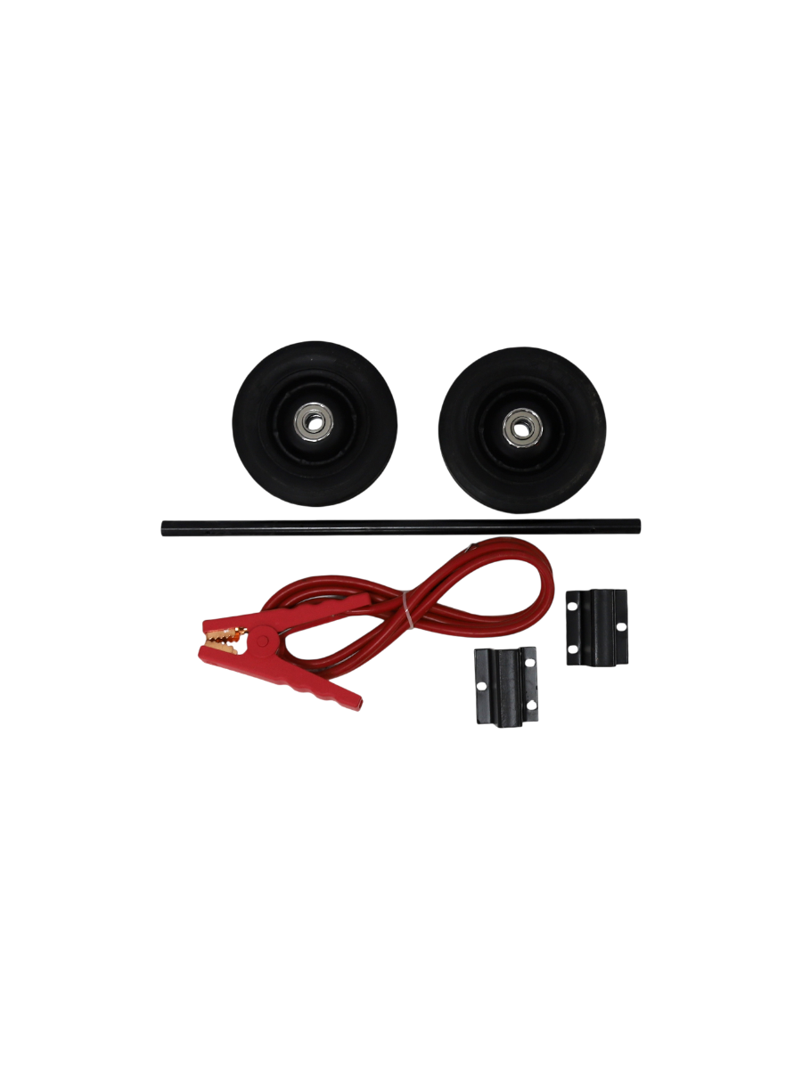Пуско-зарядное устройство - 1 шт, Колёса пластиковые - 2 шт, Ось металлическая - 1 шт, Металлический кронштейн-опора - 2 шт, Крепёжный винт - 6 шт, Стопорный шплинт - 4 шт, Предохранитель 500 А - 2 шт, Токопровод красный «+» с зажимом - 1 шт, Инструкция по эксплуатации + гарантийный талон - 1 шт |