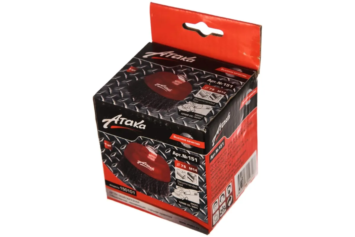 Щетка чашеобразная, гофрированная нержавеющая проволока (75 мм; М14) для УШМ №151 АТАКА 34721 - незаменимый инструмент для профессиональных мастеров и любителей, которые заботятся о качестве своей работы и хотят достичь наилучших результатов.