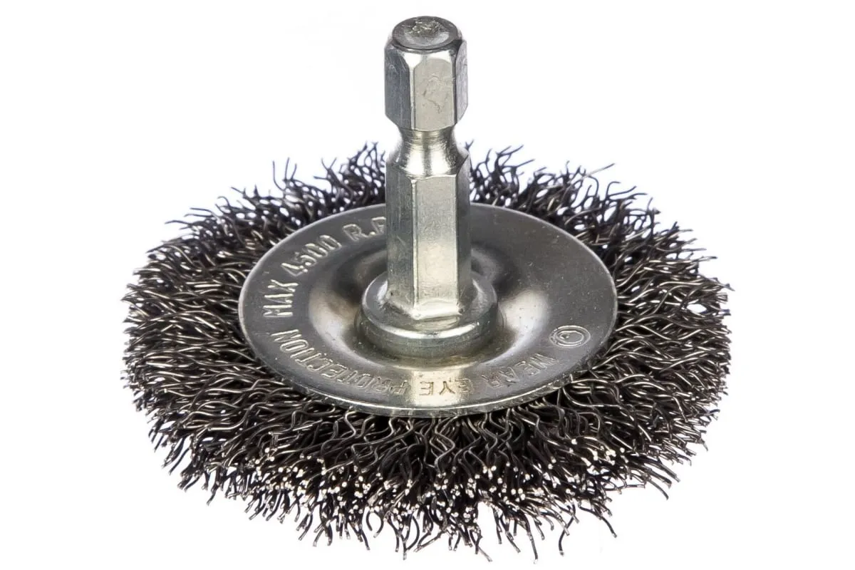 Щетка дисковая гофрированная (50 мм) для дрели шестигранный хвостовик №081 5405006120 АТАКА 22385