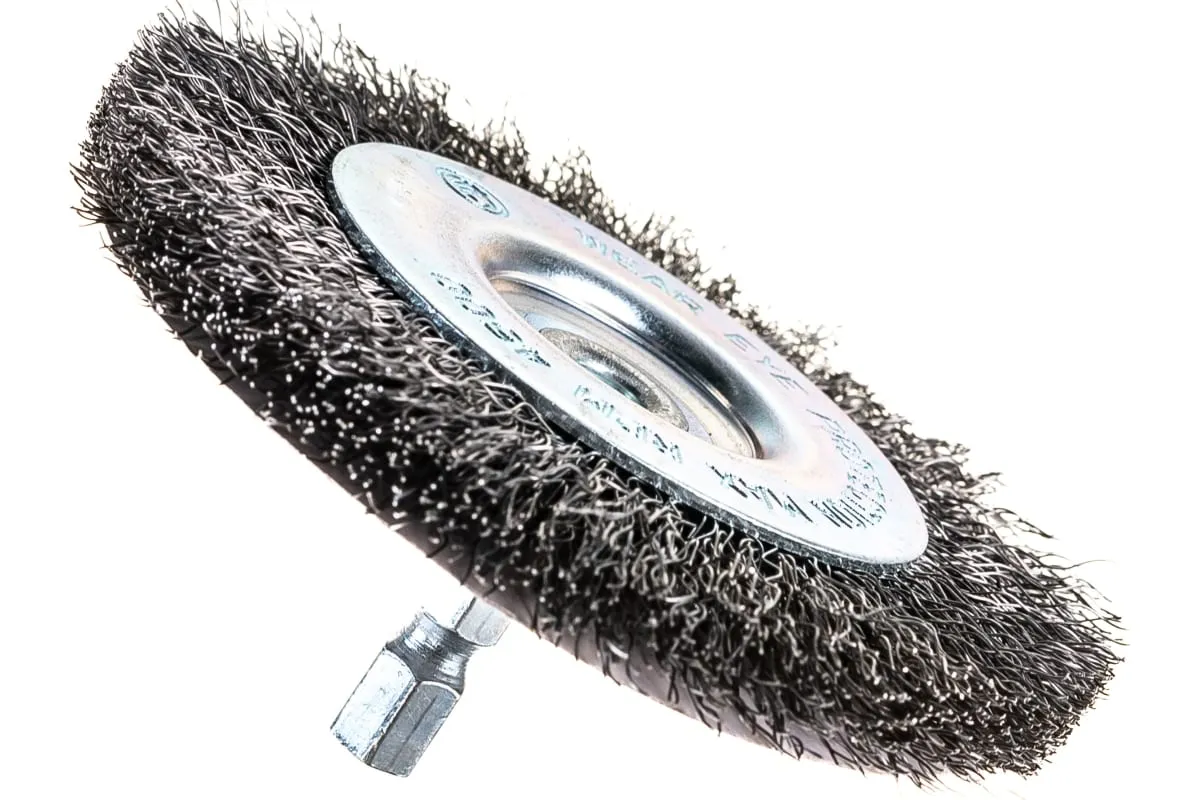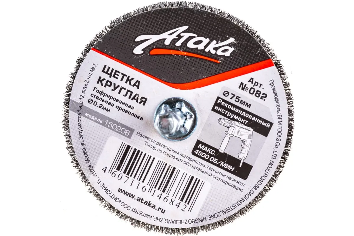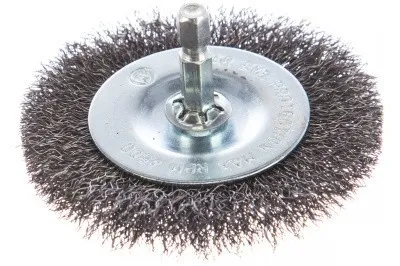 Щетка дисковая гофрированная (75 мм) для дрели шестигранный хвостовик №082 5407506120 АТАКА 22386 - незаменимый инструмент для профессиональных строителей, ремонтников и автомехаников, а также для любителей, занимающихся ремонтом и отделкой своих домов и автомобилей.