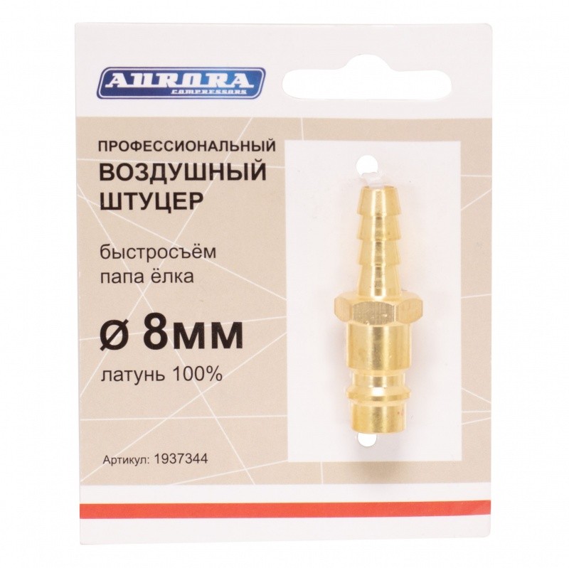 Штуцер профессиональный Aurora папа ёлка d.8мм M, латунь предназначен для соединения трубопроводов и шлангов в системах подачи жидкостей и газов. Этот элемент используется в различных промышленных и бытовых установках, где требуется надежное соединение.
