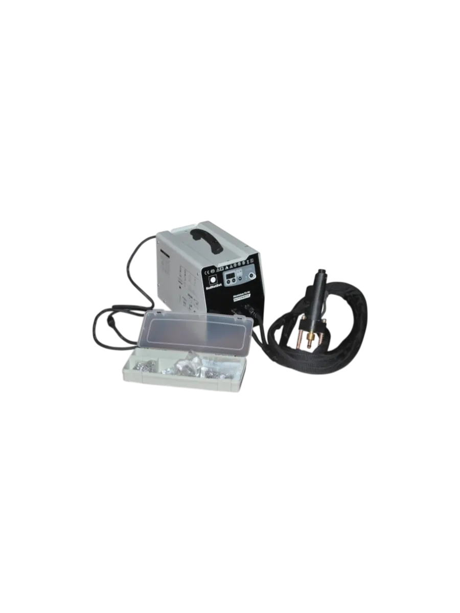 - Комплектация включает споттер, кабель массы для пистолета, автоматический пистолет с 2-м кабелем (70 мм²), кабель питания 8 м, набор расходных материалов и упаковку