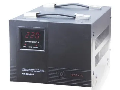 Стабилизатор напряжения Ресанта АСН-3000/1-ЭМ электромеханического типа предназначен для выравнивания входного напряжения и защиты приборов от перепадов напряжения с суммарной мощностью до 3 кВт. Работает с напряжением 220В с точностью до +/-2%.