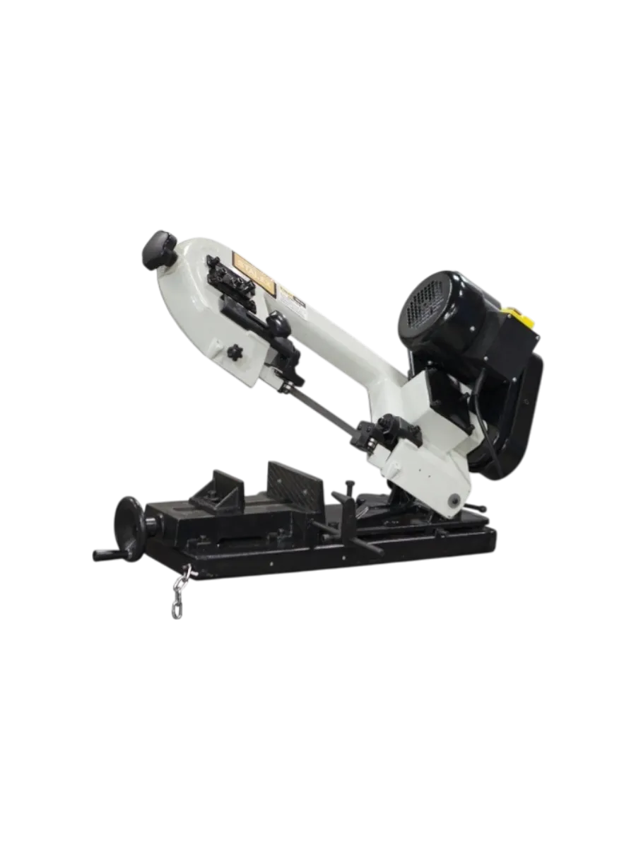Станок упрощает процесс резки металла благодаря регулируемому углу наклона рабочего стола и нескольким скоростям пильной ленты, что позволяет адаптироваться к различным условиям работы. Это повышает удобство и безопасность при эксплуатации.