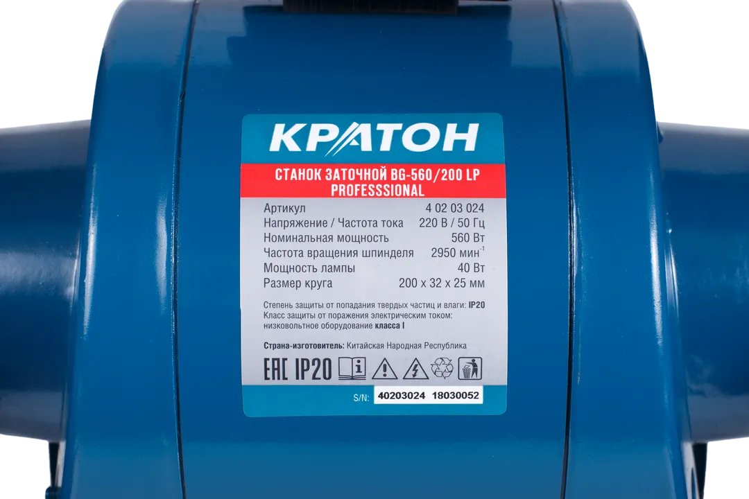 Станок заточной Кратон BG 560/200LP - надежный и универсальный инструмент, который поможет с легкостью заточить различные виды инструментов, повышая эффективность и безопасность работы.