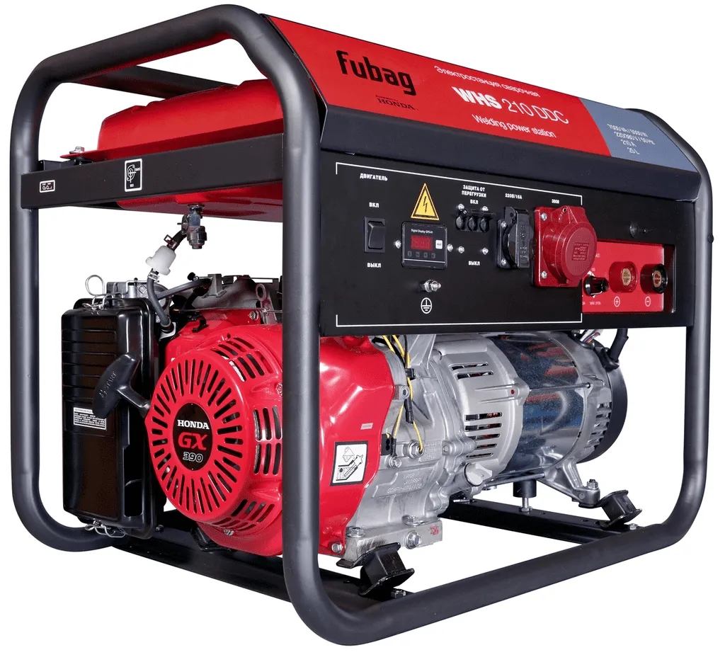 WHS 210 DDC - бензиновый сварочный генератор с высокой мощностью, постоянным сварочным током (DC) и профессиональным двигателем Honda GX. Электростанция Fubag WHS 210 DDC позволяет выполнять профессиональные задачи высокой сложности при выполнении строительно-монтажных и аварийных работ благодаря увеличенным показателям мощности и значениям постоянного сварочного тока, а так же возможности подключения мощных трехфазных потребителей. Сварочный генератор позволяет работать с рутиловыми электродами до 5 мм.