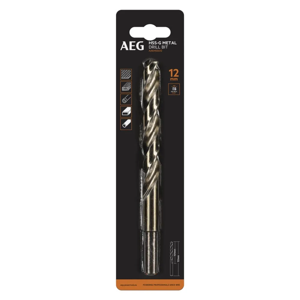 Сверло HSS-G (12х101х151 мм) AEG AAKHSSG12 4932479319 предназначено для дрелей, шуруповертов и сверлильных станков. Применяется для выполнения глухих/сквозных отверстий в металлических заготовках, древесине, пластике.